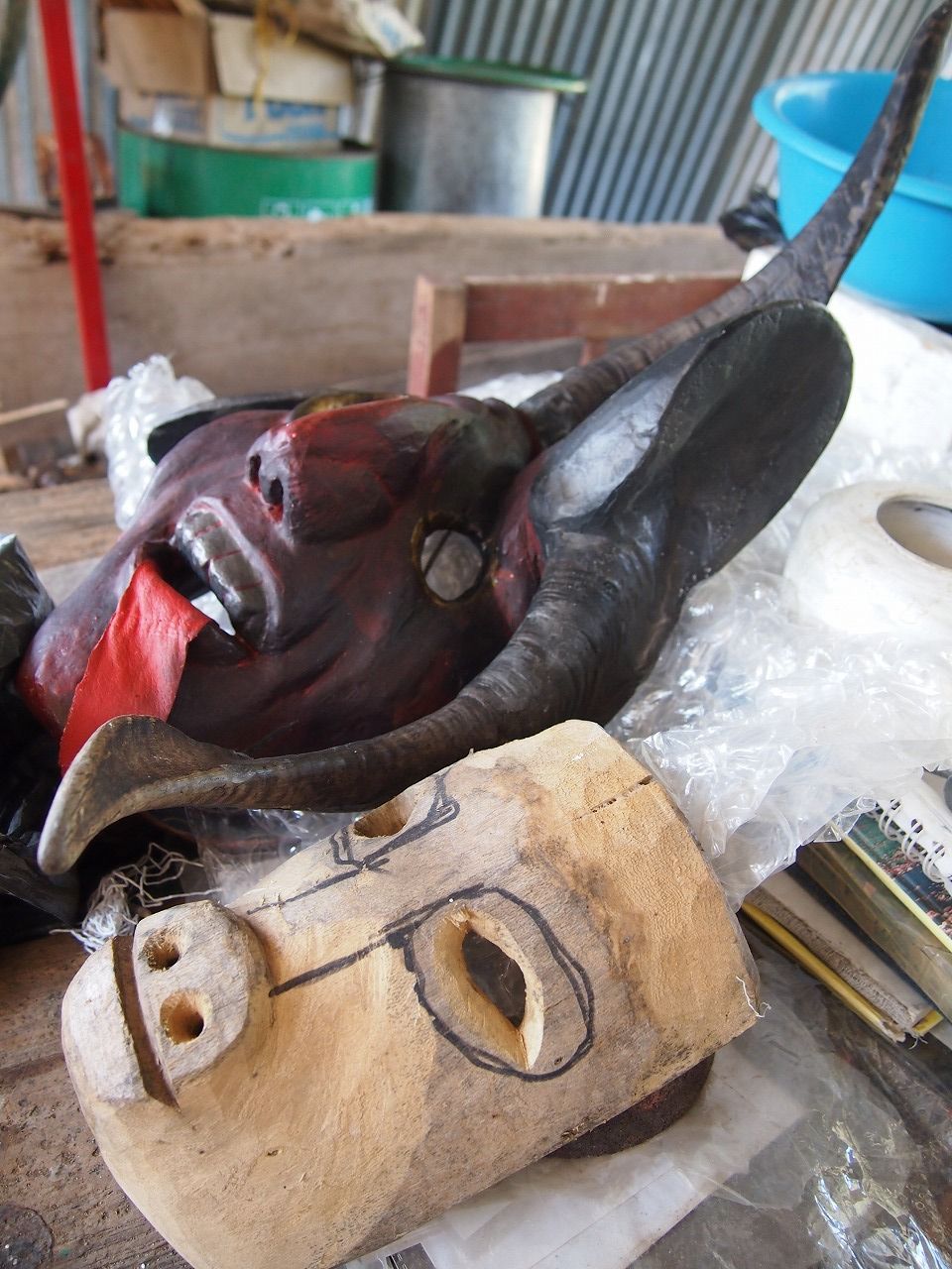 こちらは注文制作中のお面。