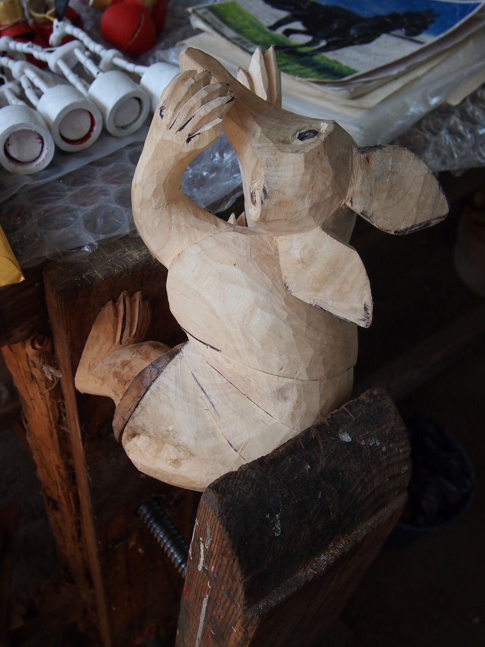 初めて作った頃と同じ木彫りのうさぎのおもちゃを制作してもらいました。