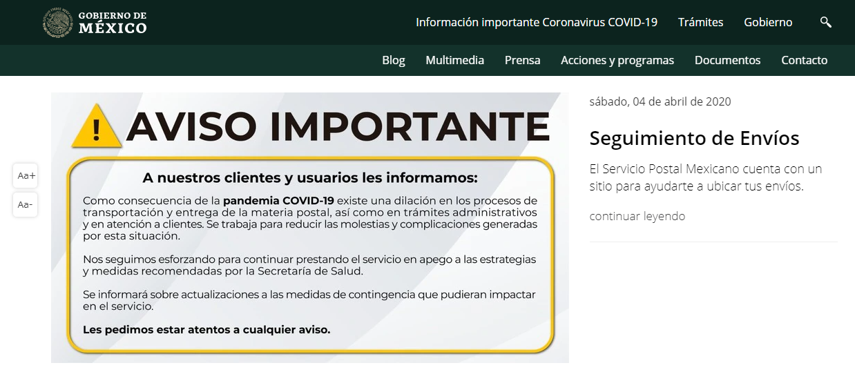 あれ?メキシコの郵便局って政府の管理下か???と。